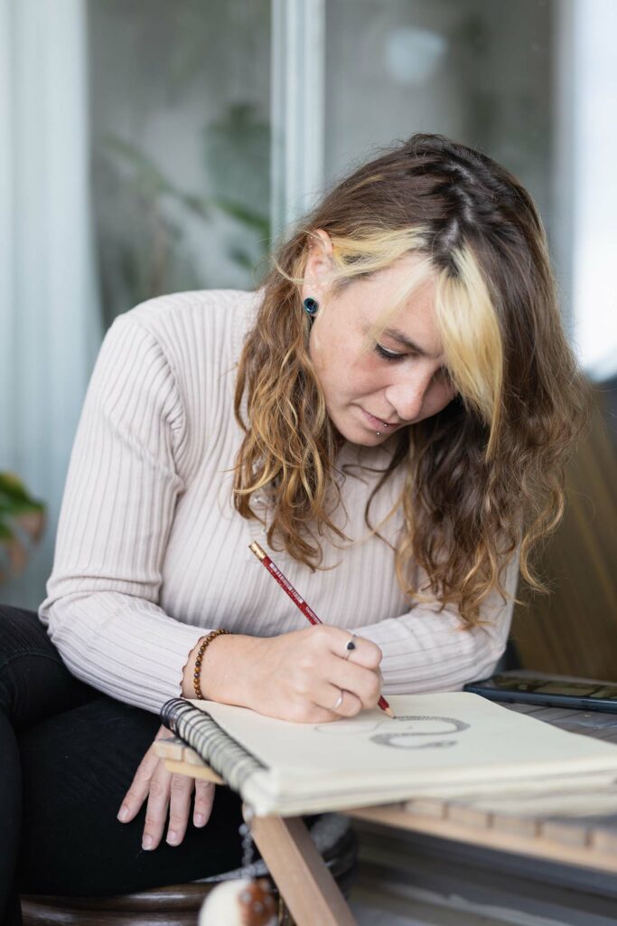 Très tôt, j’ai compris que les marges de mes cahiers ne suffiraient pas à contenir mes dessins. Cette passion m’a conduite vers une prépa d’art et des études en communication visuelle. J’ai eu l’opportunité de travailler cinq années en tant que responsable communication chez IKEA, où j’ai affiné mon sens stratégique et mon regard créatif.